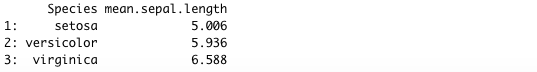 mean_by_species <- data[, .(mean.sepal.length = mean(Sepal.Length)), by = Species]